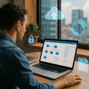 Unul dintre principalele obstacole ale muncii hibride este accesul rapid și sigur la documentele companiei. În lipsa unui sistem centralizat, angajații sunt nevoiți să trimită fișiere prin e-mail, să folosească aplicații personale de cloud sau să păstreze documente pe dispozitive locale, ceea ce creează un haos informațional și multiple breșe de securitate.